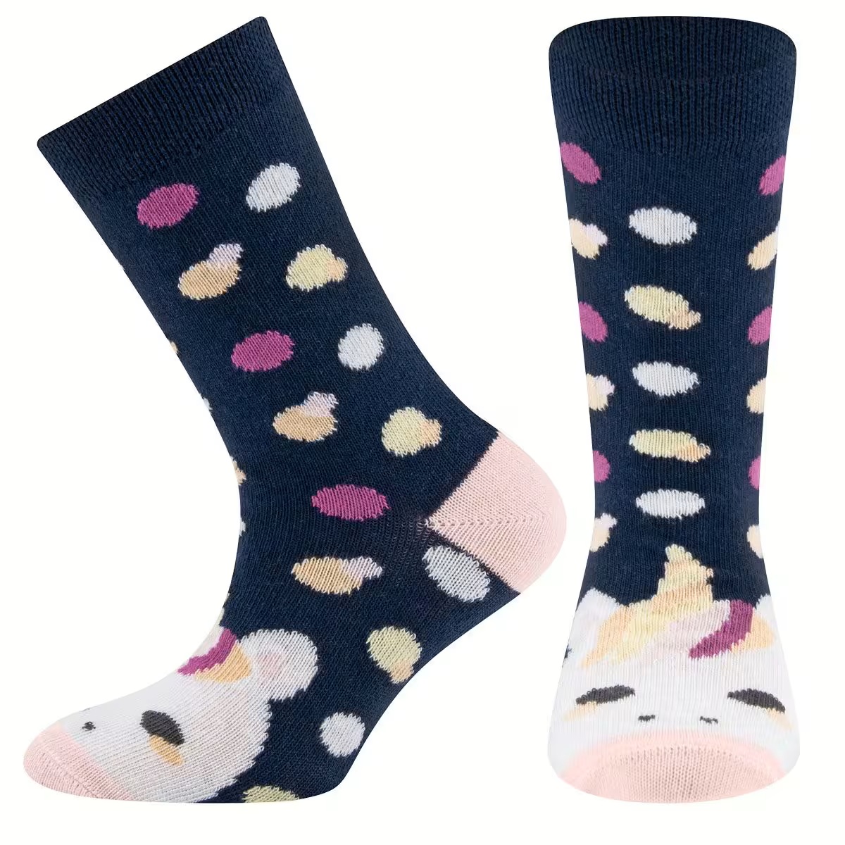 - mit stylischem Einhornmotiv an den Zehen und Punkten allover