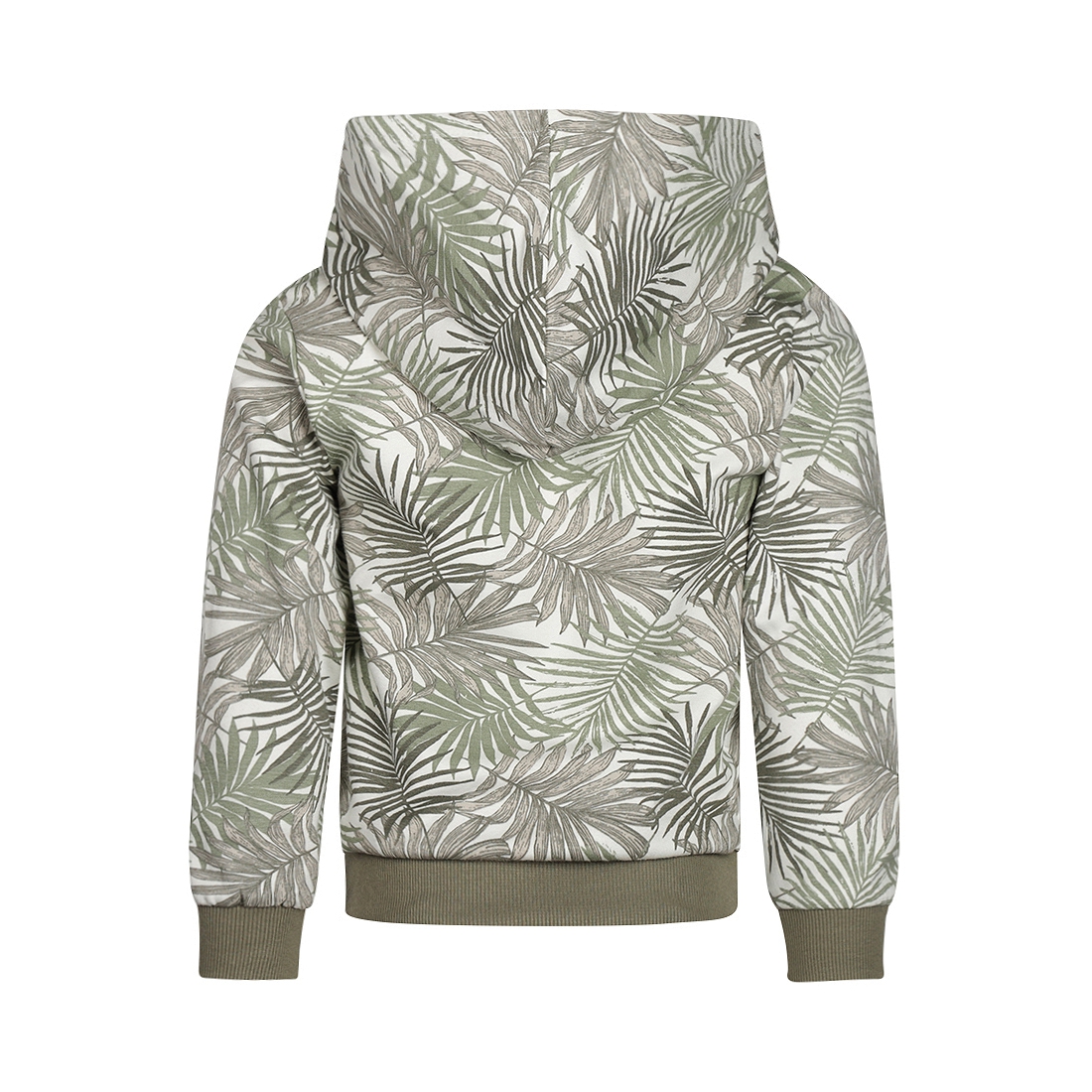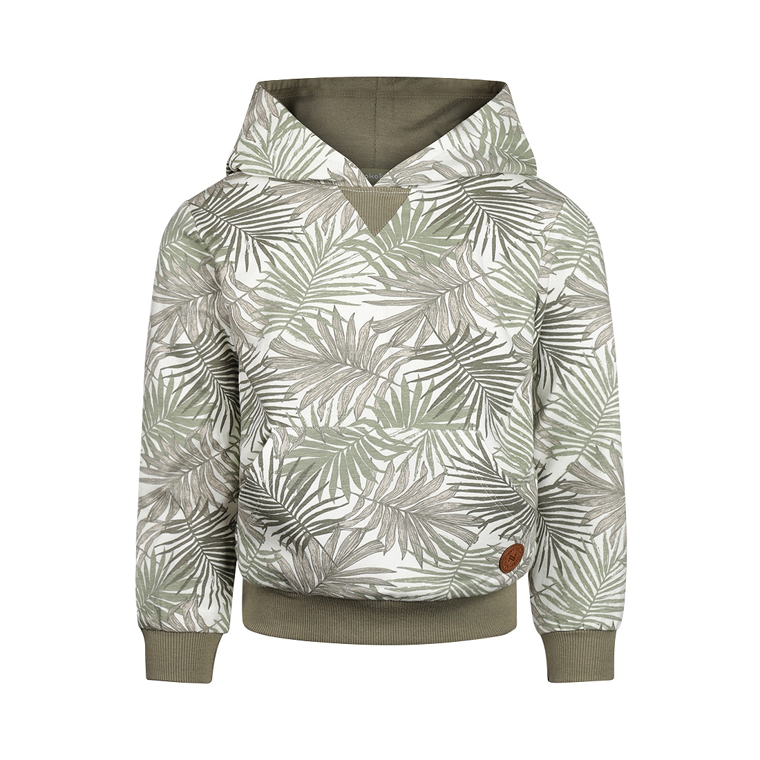 • Der Kapuzenpullover ist cremefarben und mit einem Print in mehreren Grüntönen versehen.