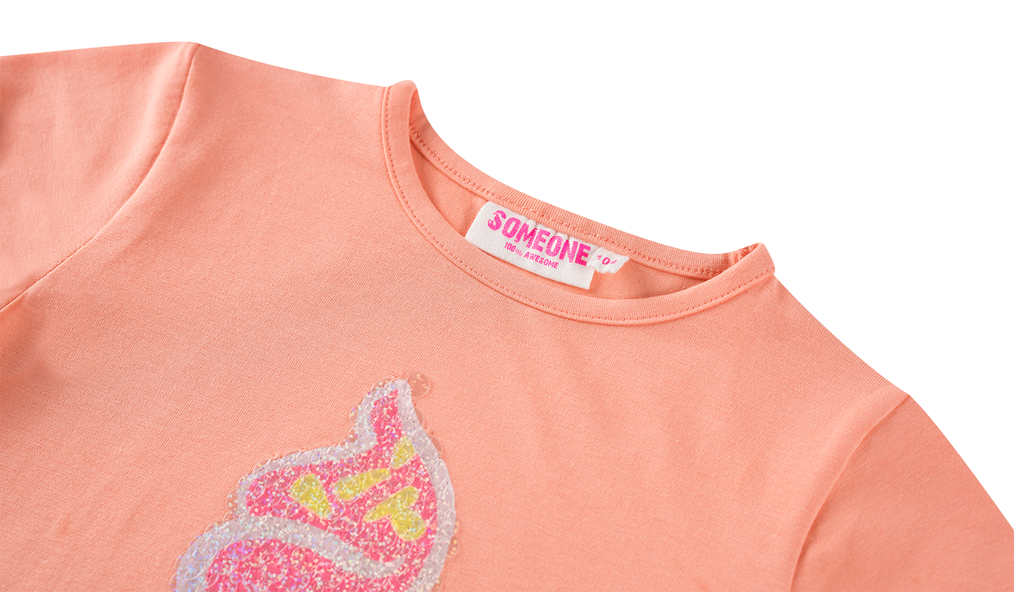 - Ein fröhliches T-Shirt, das sich sofort wie Sommer anfühlt.