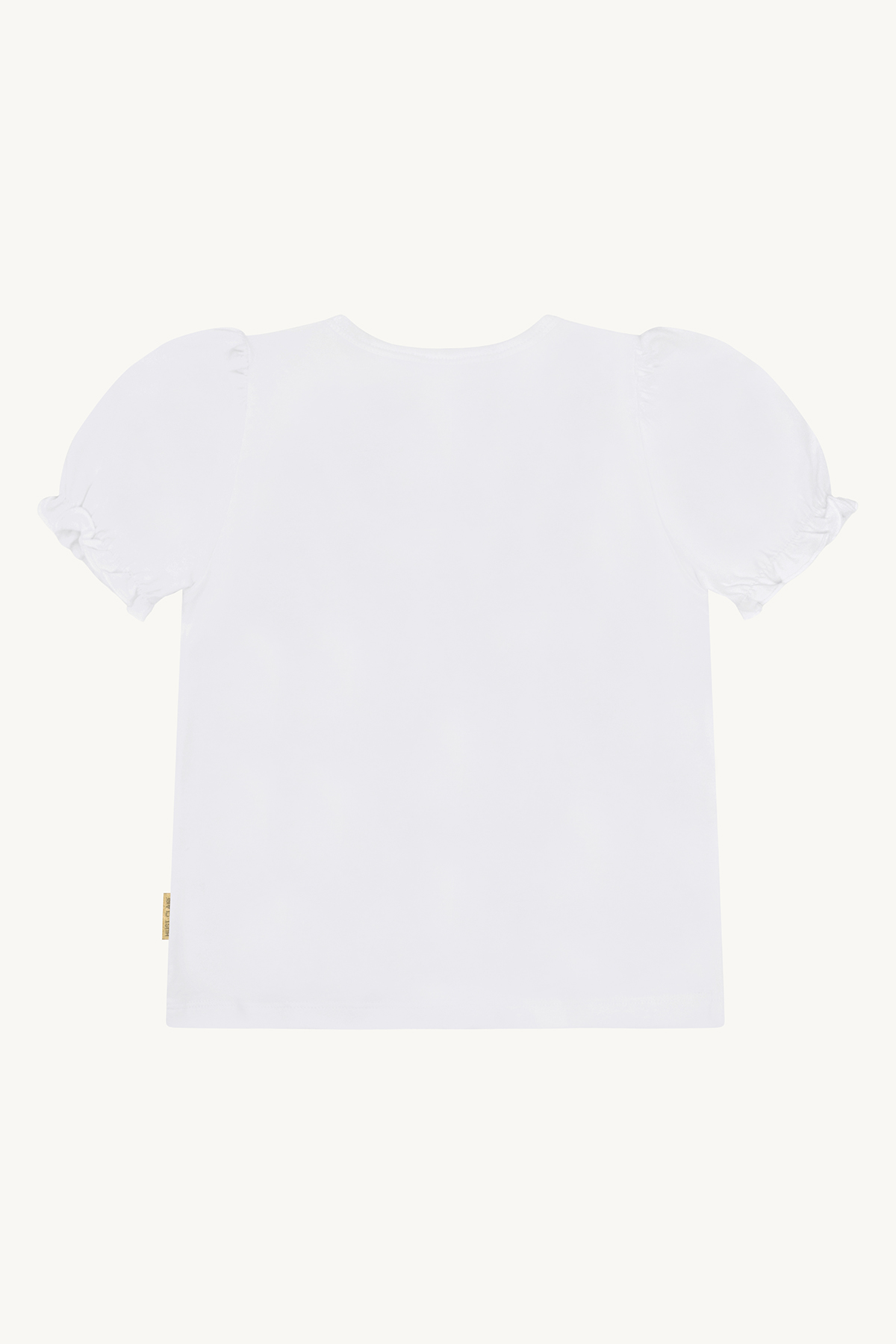 Dank der weichen Baumwollqualität mit Stretch-Anteil bietet das Shirt ein angenehmes Tragegefühl und optimale Bewegungsfreiheit – perfekt für aktive Kinder. Die leicht gerafften Puffärmel verleihen dem Look eine feminine, verspielte Note.